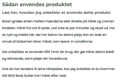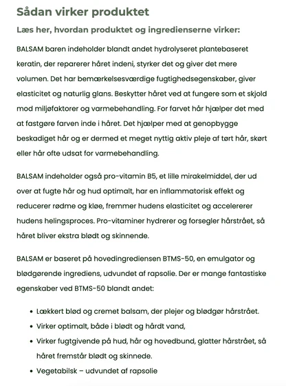 BALSAM baren fordeles nemt i håret efter den er gjort våd. Den føles cremet og efterlader håret blødt, velplejet og skinnende, uden at tynge eller fedte håret.