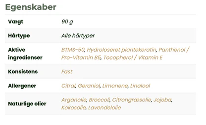 Dit hår vil føles rent, blødt og skinnende – fuld af liv og glans efter få anvendelser. Baren er specielt formuleret til at pleje, hydrere og glatte hårstrået. Du får et sundt, velplejet og stærkt hår med færre knækkede hårstrå.