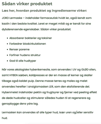 JORD Lermaske er en mild dybderensende lermaske med malede økologiske hybenkerner, der effektivt fjerner døde hudceller og renser huden. Lermasken er ikke tilsat dufte.